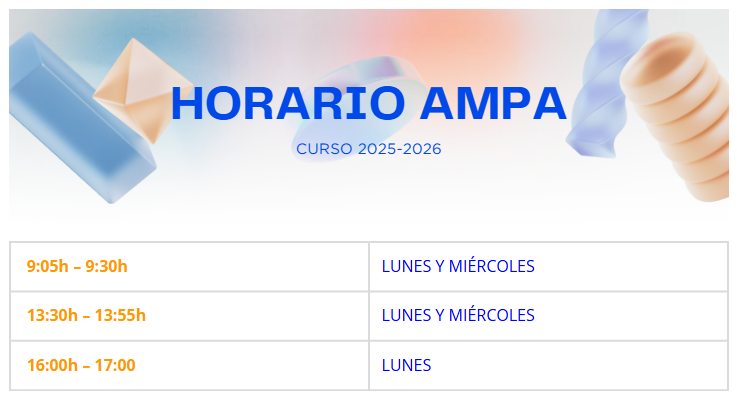HORARIO ATENCIÓN AMPA